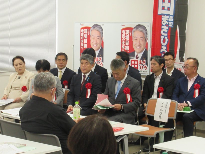 滋賀県議会議員 海東英和 氏(滋賀県看護問題議員連盟代表)、目方信悟 氏(滋賀県議会議長)、